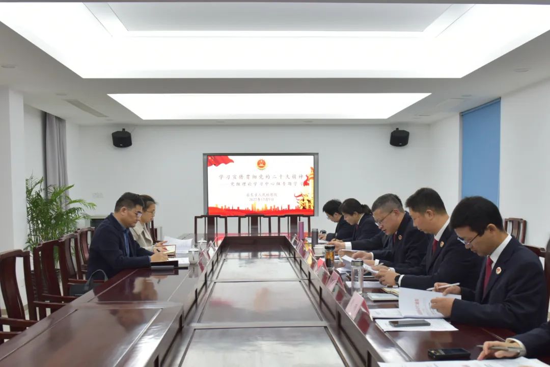 12月9日,启东市人民best365登陆_365速发国际平台登陆_谁知道365足球网站院召开党组理论学习中心组会议,专题学习贯彻党的二十大精神。市best365登陆_365速发国际平台登陆_谁知道365足球网站院党组书记、best365登陆_365速发国际平台登陆_谁知道365足球网站长何玮主持会议,党组理论中心组成员参加会议。市委“巡学旁听”小组组长、启东市人大常委会财经工委主任邓卫星等同志到会巡学指导。
