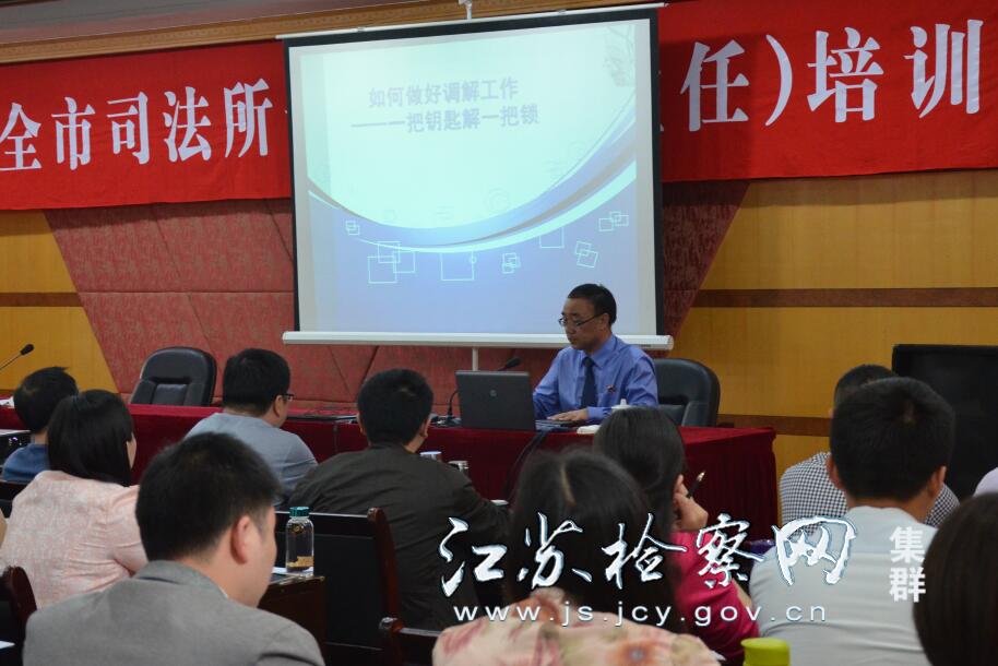 经验要共享!陈新应邀在全市司法所长培训班上作调解交流。